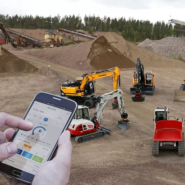 Både Hyundai och Takeuchi har fabriksmonterade system för maskinövervakning i sina maskiner. Hyundai kallar systemet för HiMATE och Takeuchi benämner sitt system Takeuchi Fleet Management (TFM). Systemet bygger på tekniken telematik, ett sätt att trådlöst överföra data från en maskin till din dator eller mobil. Det är ett mycket enkelt sätt för dig att hantera dina maskiner effektivt och ekonomiskt. Läs mer längst ner på sidan. Det integrerade systemet övervakar maskinen och ger information om maskinstatus. Exempel på den typ av data du får tillgång till är totalt antal motortimmar, faktisk arbetad tid och bränsleförbrukning. Förutom alla data du själv får tillgång till via en webbplats eller mobilapp ger det också möjlighet för din verkstad att se när din maskin behöver service eller någon annan åtgärd. Om du tecknar ett serviceavtal kan vi sköta övervakningen och se till att din maskin får den service den behöver i god tid.